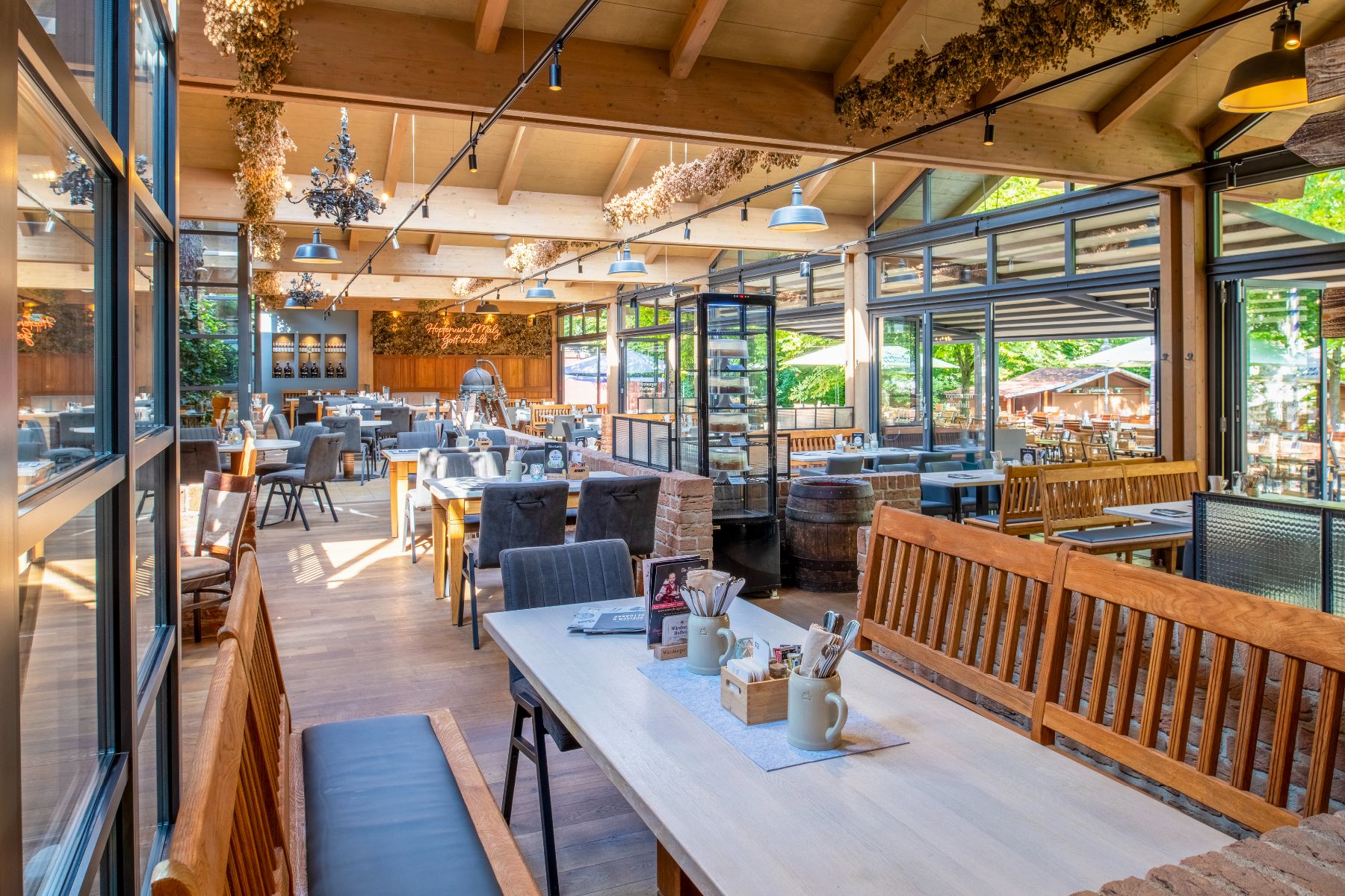 Große flexible Räumlichkeiten für bis zu 550 Gäste zuzüglich Biergarten.