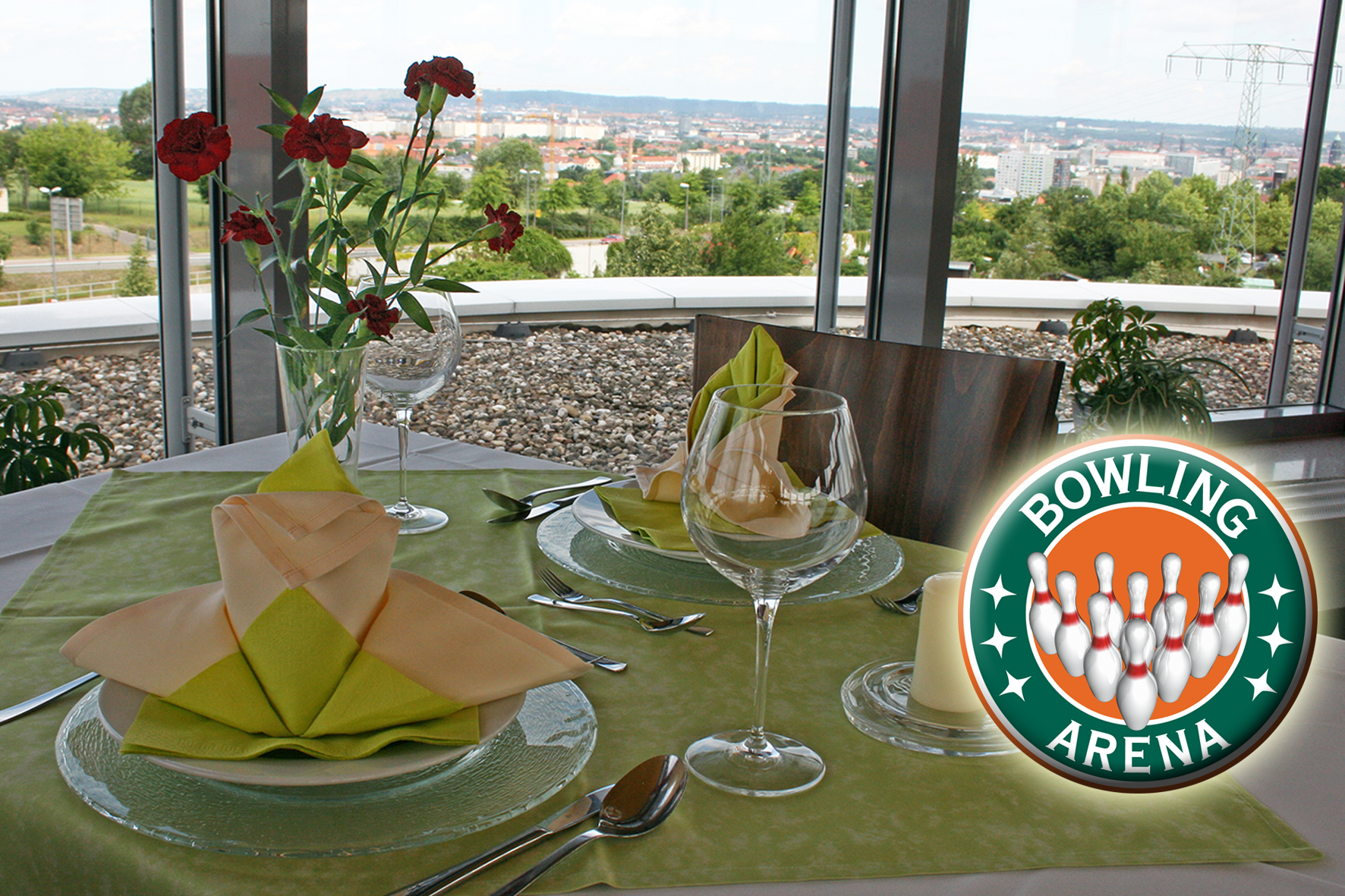 Unser Panorama-Restaurant befindet sich im gläsernen Turmbereich der BOWLING-ARENA und verfügt über ca. 50 Plätze. Hier können Sie in modern-gemütlicher Atmosphäre mit fantastischem Blick über Dresden unser individuelles Speisen- und Getränkeangebot genießen.