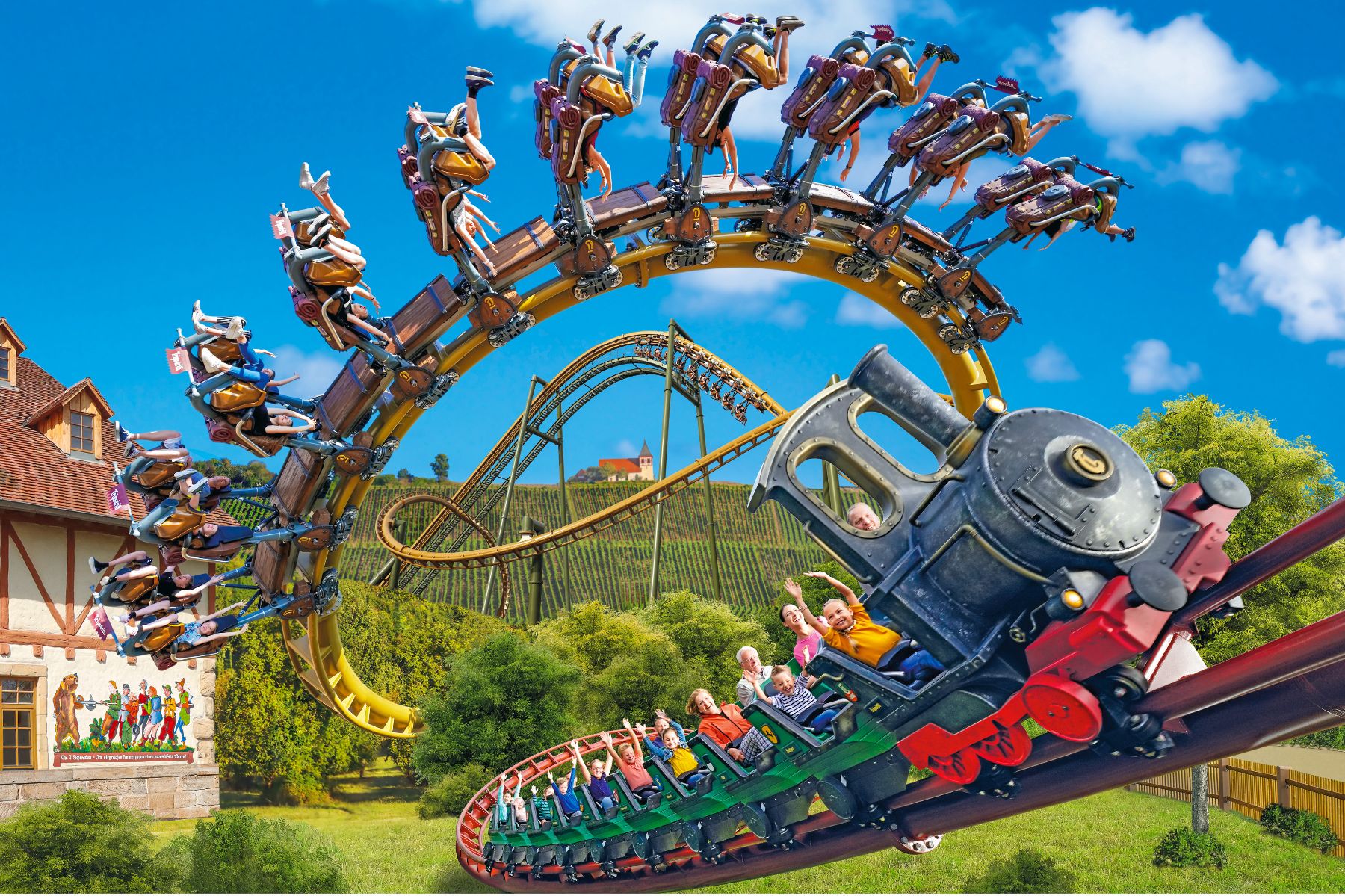 Vor den Toren Stuttgarts, inmitten blühender Natur, liegt der Erlebnispark Tripsdrill. Seit der Eröffnung der ersten Altweibermühle im Jahre 1929 überzeugt Deutschlands erster Erlebnispark mit seiner einzigartigen Thematisierung getreu dem Motto „Schwaben anno 1880“ – heute ist Tripsdrill mit über 100 originellen Attraktionen und dem Wildparadies das ideale Ausflugsziel für Ihre Kunden.